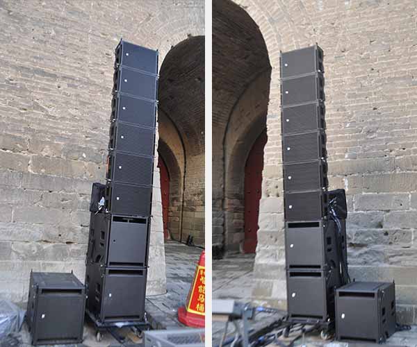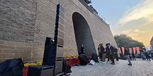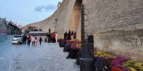 如何更好的展現(xiàn)古城的歷史面貌,就需要擴(kuò)聲設(shè)備盡可能要小,并且城樓容納面積有限也不適合使用復(fù)雜的大系統(tǒng),綜合考量后選擇了美真音響品牌,此次活動(dòng)126只MiniRay齊上陣,主要分布在榆林古城的鎮(zhèn)遠(yuǎn)門、甕城、南門、萬(wàn)佛樓、鐘樓、凱歌樓、鼓樓。MiniRay的輕便小巧在這種情況下正好大顯身手。