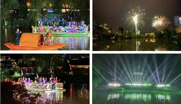 古鎮(zhèn)晚上有精彩的藝術(shù)表演,分為兩個(gè)階段進(jìn)行,其中活動(dòng)內(nèi)容包含、古裝實(shí)景演藝、歌舞走秀、詩詞朗誦、煙花燈光秀等輪番上演,為現(xiàn)場的游客在充滿古香古色的景點(diǎn),帶來了一場穿越時(shí)空的表演。