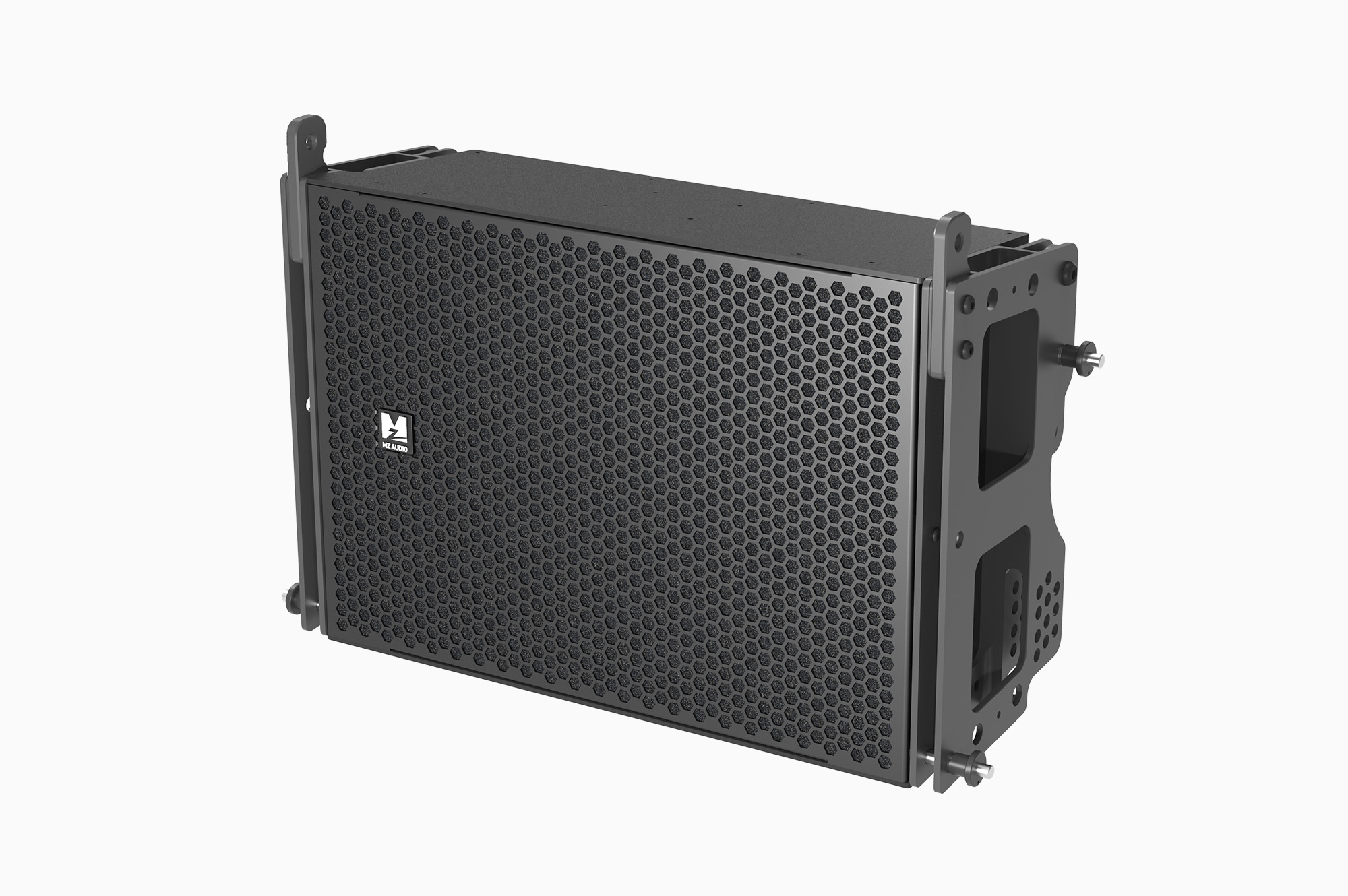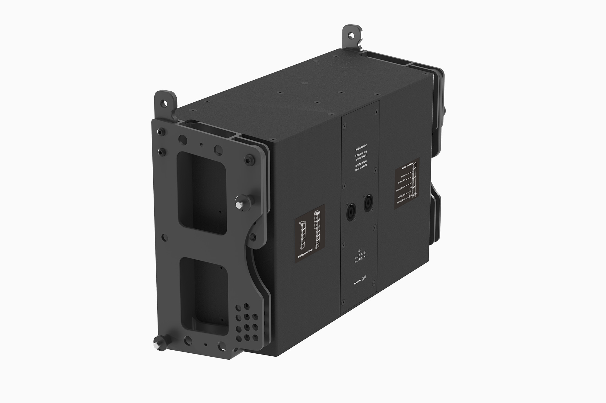 為了進一步控制箱體的重量,我們不僅采用了鋁合金吊掛件,還使用了加纖尼龍材料來制作箱體。在如此緊湊的箱體內(nèi),最薄處僅有4mm,用木板已經(jīng)不可能,用鋁板雖然有足夠的強度,但無法實現(xiàn)足夠輕的重量,模具壓制的加纖尼龍材料箱體成為最佳選擇,音箱的重量控制到了約10kg,這也是足夠讓女性可以輕松操作的重量!